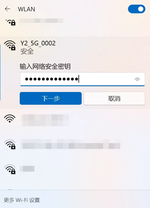 In the list below, find the Wi-Fi you want to connect to and enter the password.