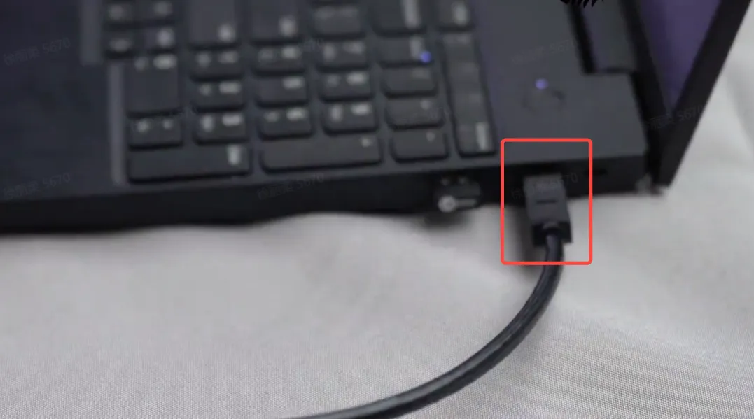 Insert the other end of the Ethernet cable into the laptop's Ethernet port.