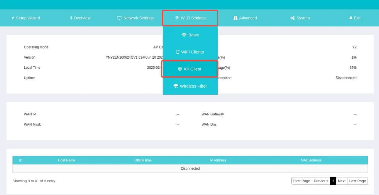 Turn off the "AP Client" switch and click the "Save" button at the bottom of the page to save.